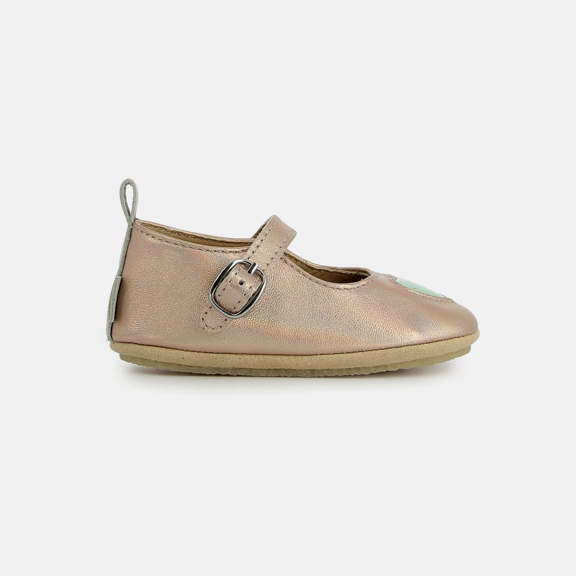 Ces chaussons en cuir pour bébé sont conçus pour imiter la sensation de la marche pieds nus tout en gardant les pieds bien au chaud. Fabriqués en cuir souple, ils sont cousus retournés, à la manière d’une ballerine, pour offrir une finition sans couture et un confort optimal. Leur semelle en crêpe naturel adhère au sol et évite ainsi aux bébés de glisser. Ils se chaussent facilement grâce à une boucle réglable à la cheville.