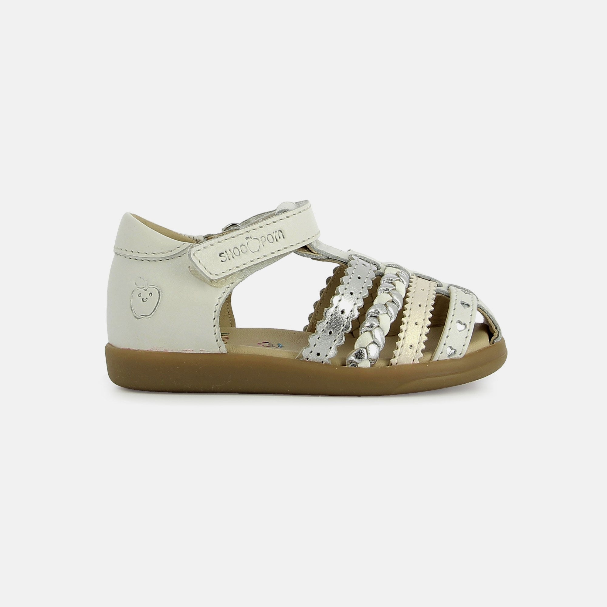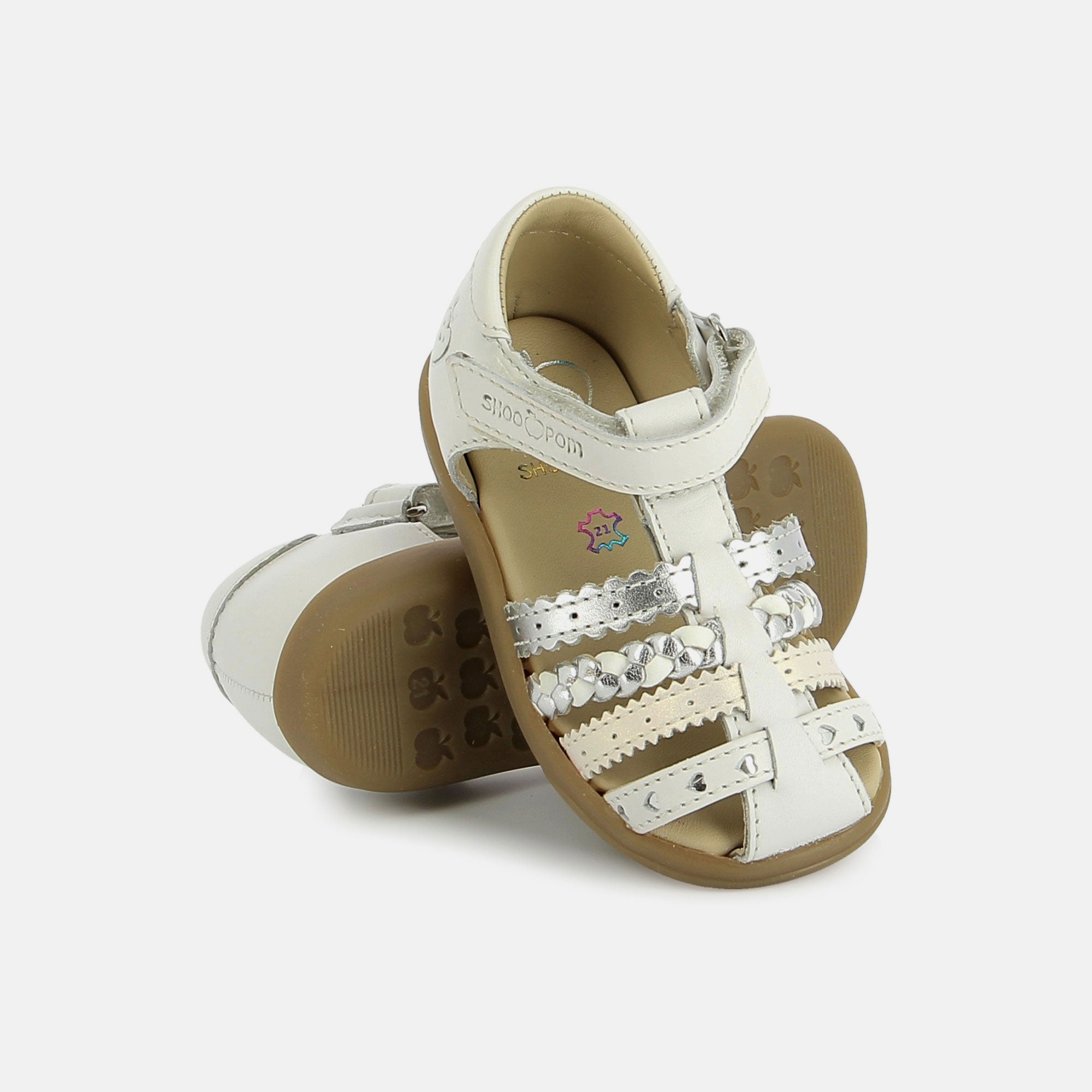 Cette sandale premiers-pas en cuir est un indispensable de la saison estivale. Pratique à chausser, elle dispose d'une bride à scratch pour un ajustement optimal à la cheville. Son bout fermé protège les orteils. Pensée et développée avec expertise par notre bureau d’études en Vendée, cette chaussure réunit qualité, confort et savoir-faire Shoo Pom.
