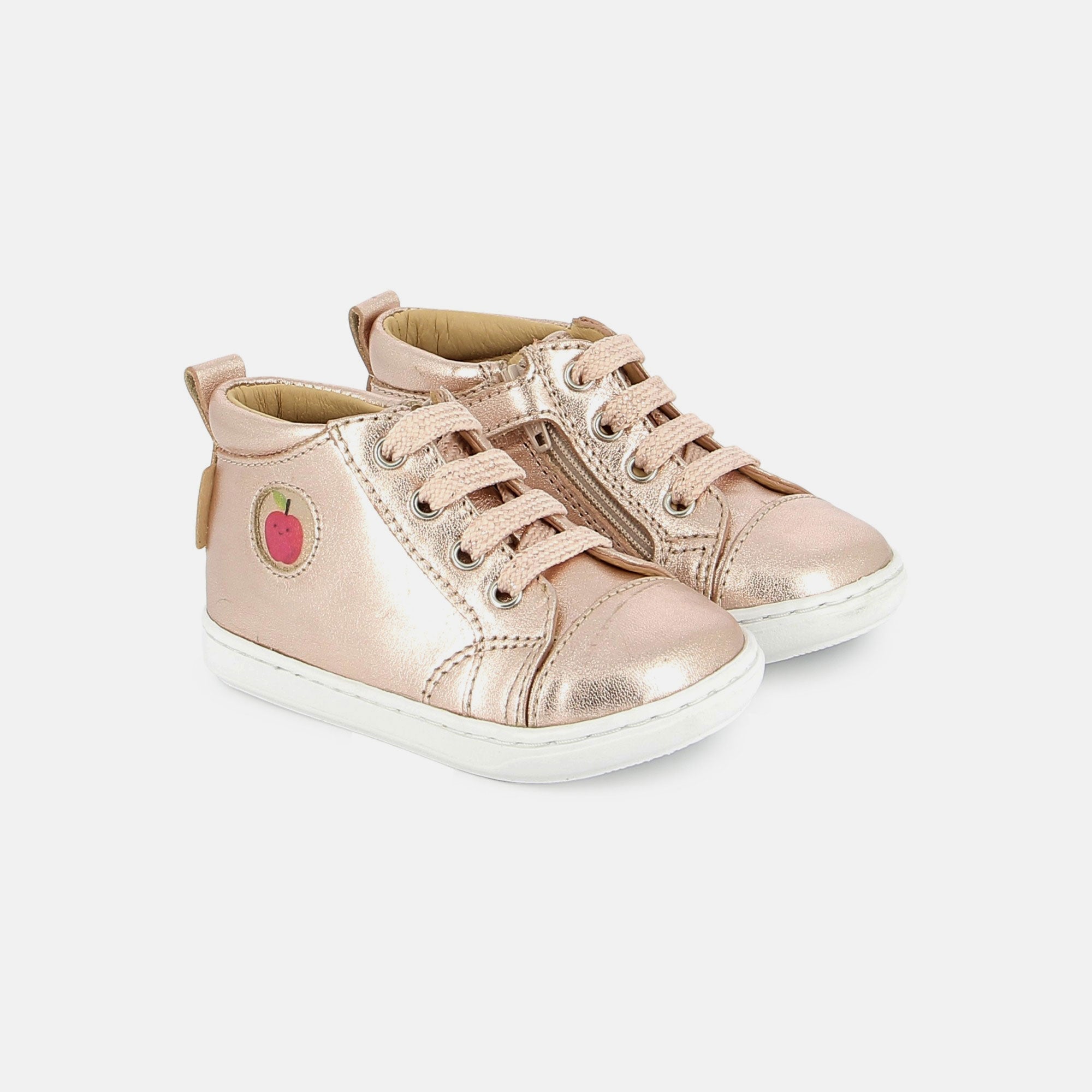 Cette chaussure premiers-pas en cuir a été spécialement conçue pour accompagner bébé dans l’apprentissage de la marche, en alliant confort, maintien et liberté de mouvement. La tige haute à lacets garantit un maintien optimal de la cheville, tandis qu’un zip intérieur discret permet d’ouvrir entièrement la chaussure pour un enfilage rapide et facile. Sa semelle extérieure en caoutchouc résistant offre adhérence et souplesse, parfaite pour les aventures du quotidien. La semelle intérieure en cuir et amovible permet de vérifier la croissance du pied. Sans voûte plantaire, ce modèle favorise un développement naturel, pour respecter la morphologie des pieds en pleine croissance. Pensée et développée avec expertise par notre bureau d’études en Vendée, cette chaussure réunit qualité, confort et savoir-faire Shoo Pom.