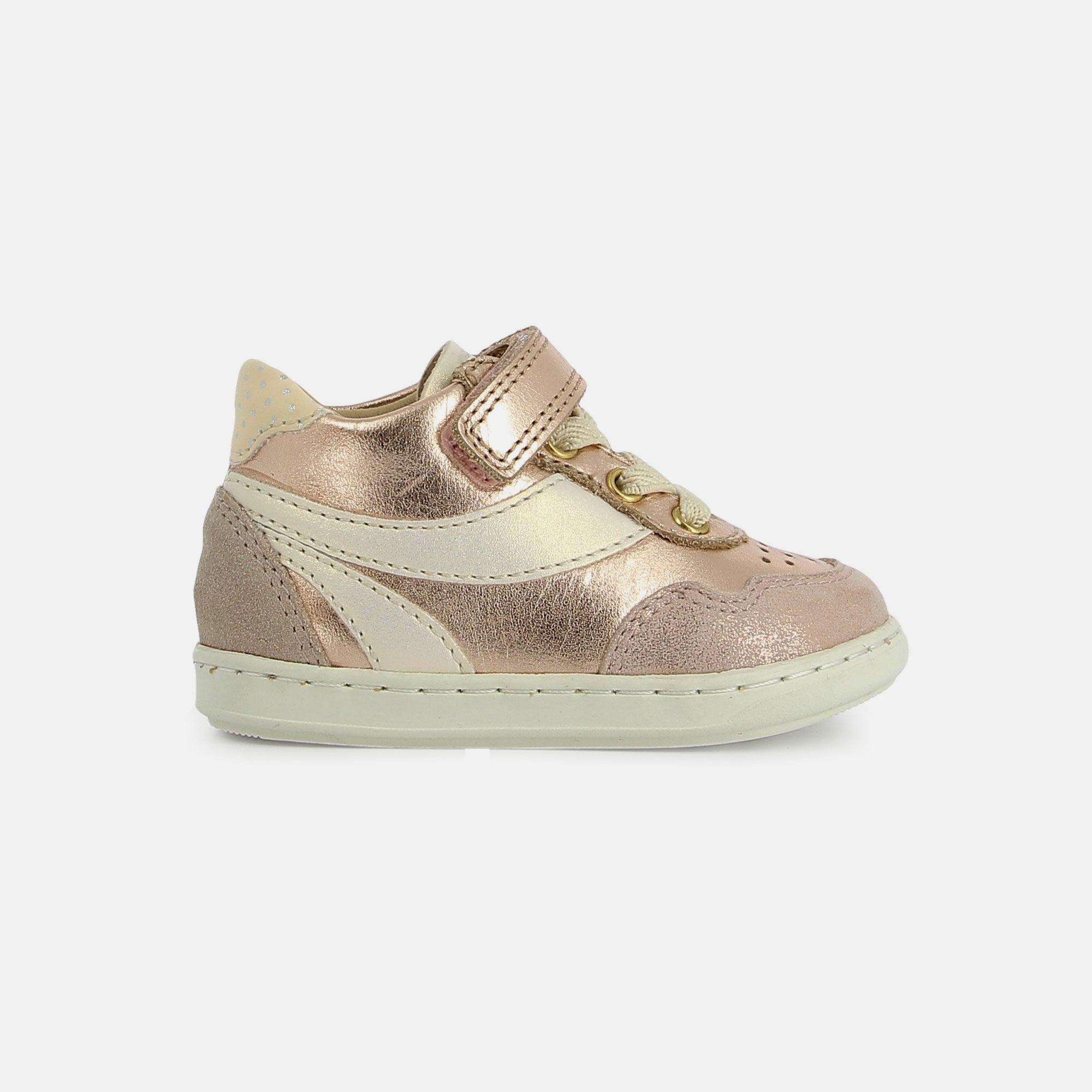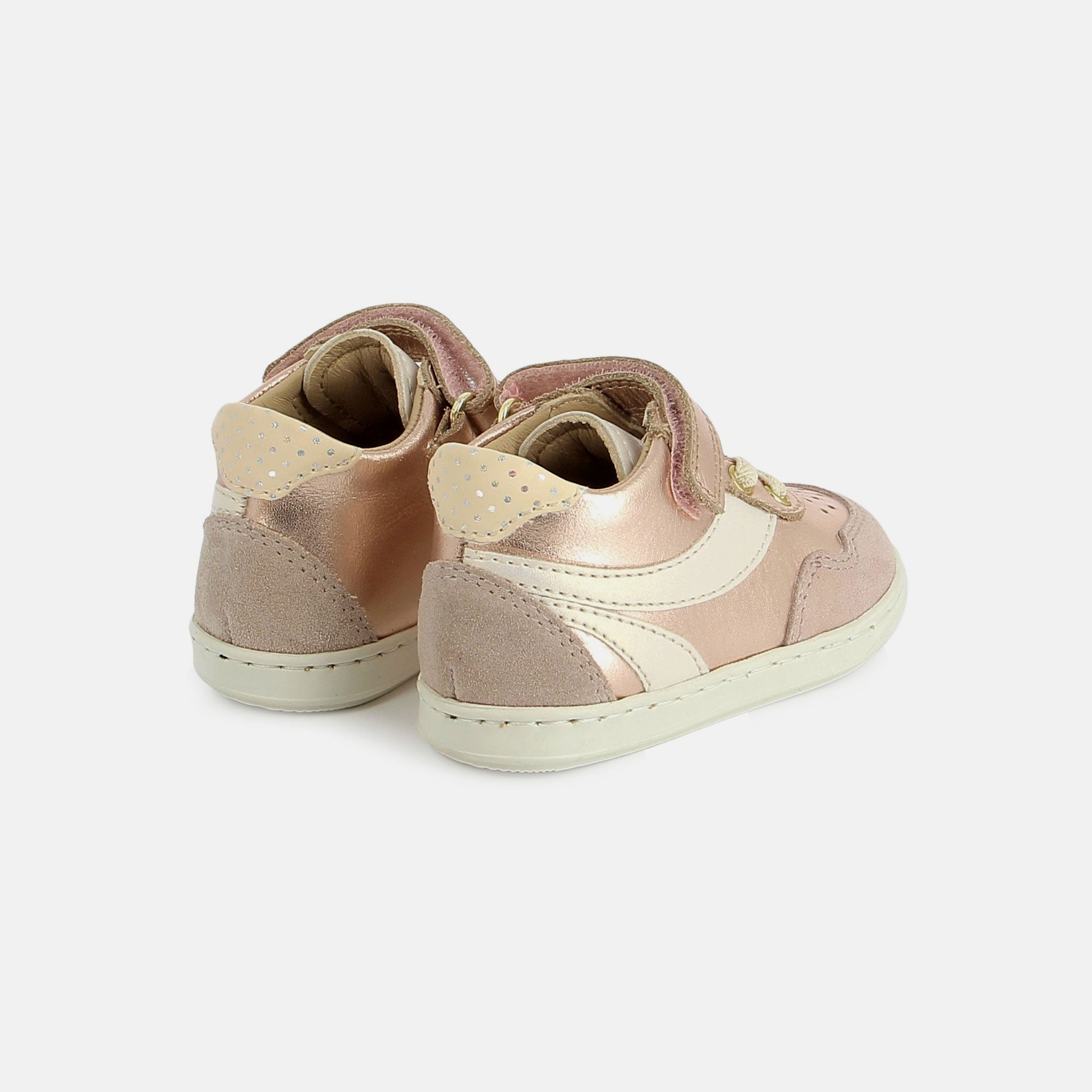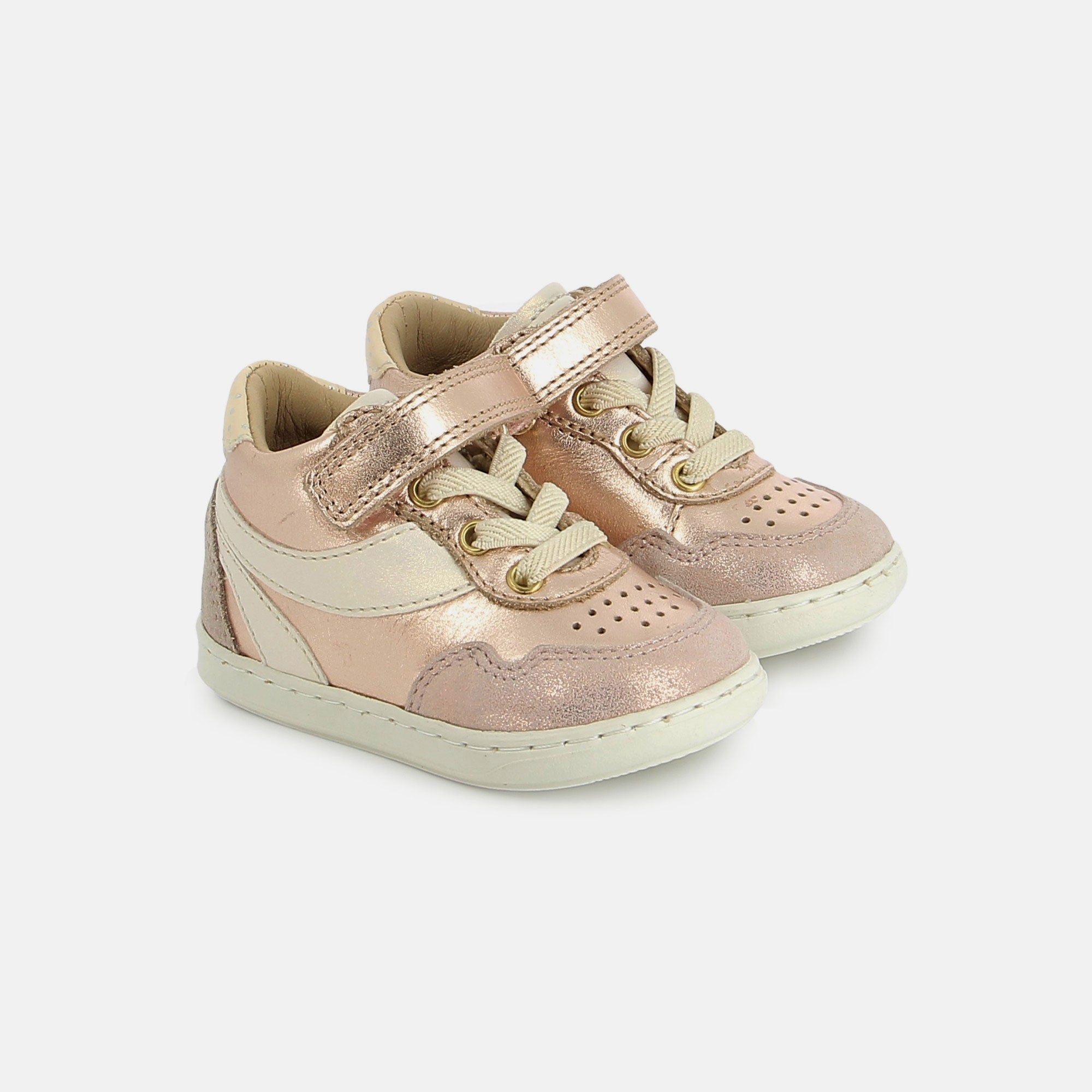 Cette chaussure premiers-pas en cuir a été spécialement conçue pour accompagner bébé dans l’apprentissage de la marche, en alliant confort, maintien et liberté de mouvement. La tige haute à lacets garantit un maintien optimal de la cheville, tandis qu’un scatch permet d’enfiler rapidement la chaussure. Sa semelle extérieure en caoutchouc résistant offre adhérence et souplesse, parfaite pour les aventures du quotidien. La semelle intérieure en cuir et amovible permet de vérifier la croissance du pied. Sans voûte plantaire, ce modèle favorise un développement naturel, pour respecter la morphologie des pieds en pleine croissance. Pensée et développée avec expertise par notre bureau d’études en Vendée, cette chaussure réunit qualité, confort et savoir-faire Shoo Pom.