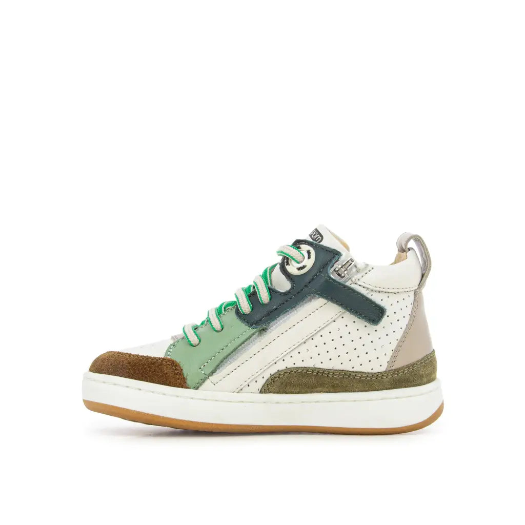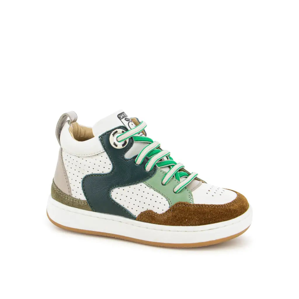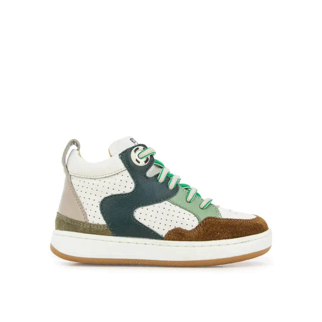 Cette basket à lacets pour enfants est présentée dans une version en cuir blanc et marron. Cette chaussure souple et légère est conçue avec des matériaux de qualité pour le bon développement du pied. Sa tige haute avec laçage permet un bon ajustement et maintien de la cheville. Elle se chausse et se déchausse facilement grâce à son zip intérieur.
