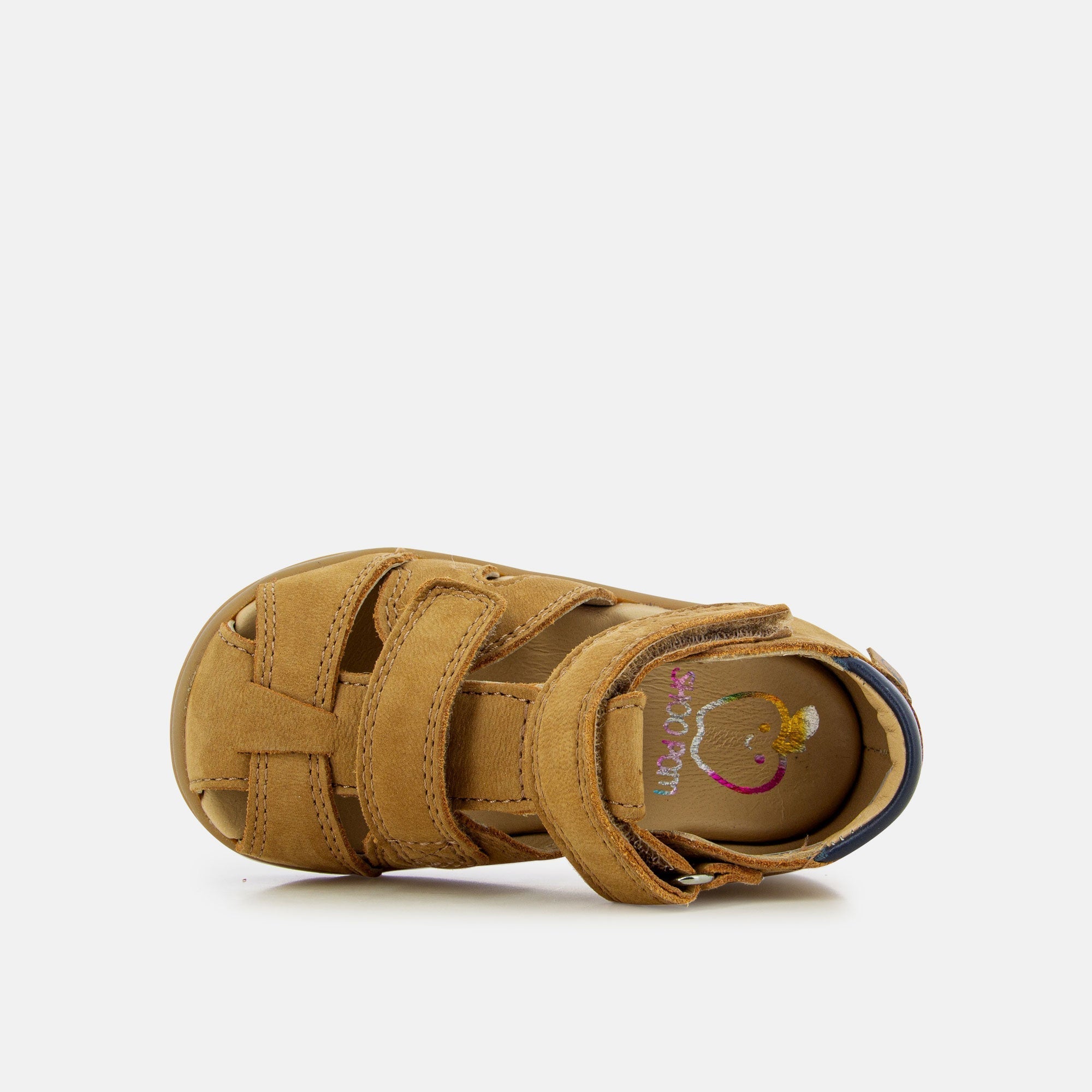 This first-step leather sandal is a must-have for the summer season. Practical to put on, it has a Velcro ankle strap as well as a front strap, also adjustable by Velcro. Its closed toe protects the toes.