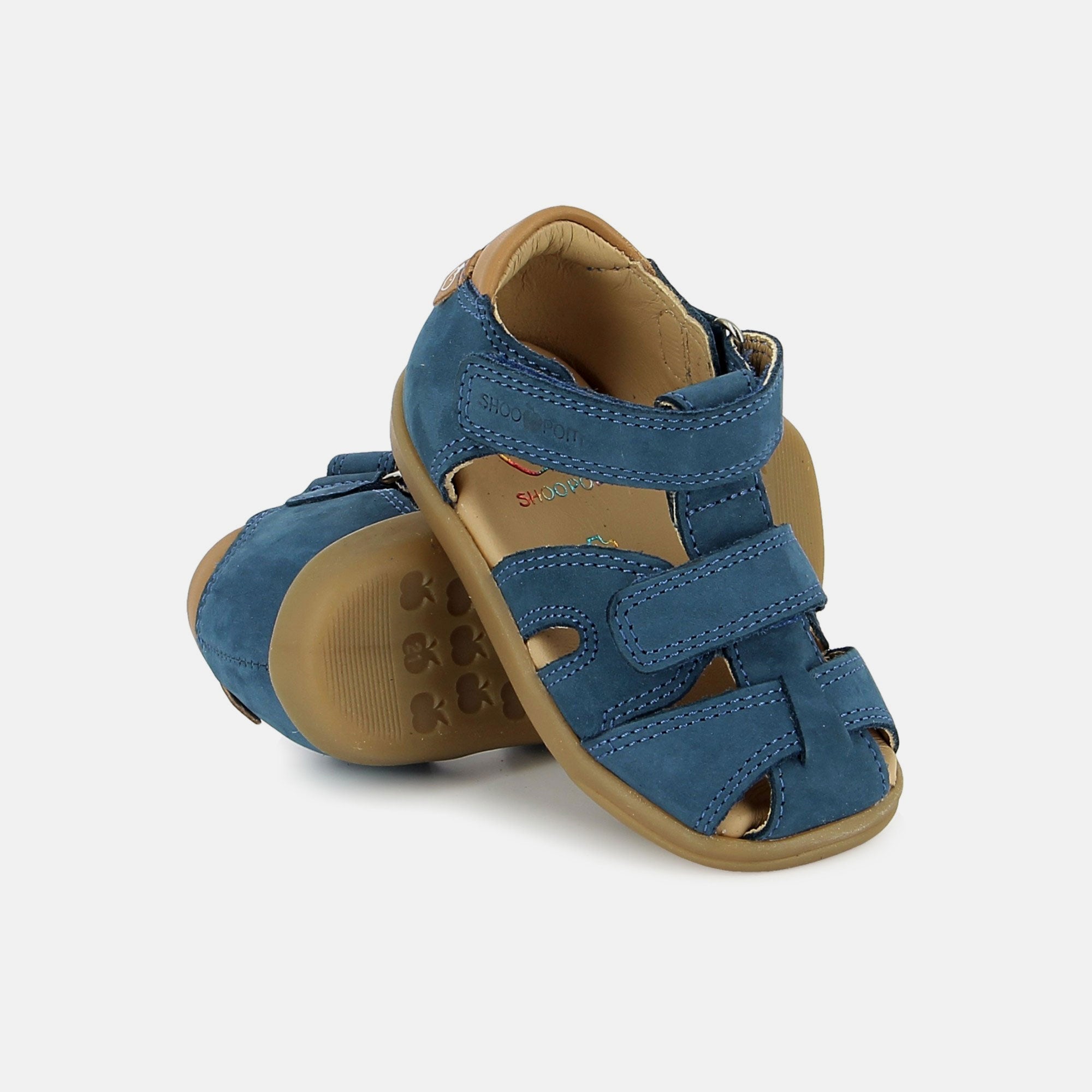 This first-step leather sandal is a must-have for the summer season. Practical to put on, it has a Velcro ankle strap as well as a front strap, also adjustable by Velcro. Its closed toe protects the toes.
