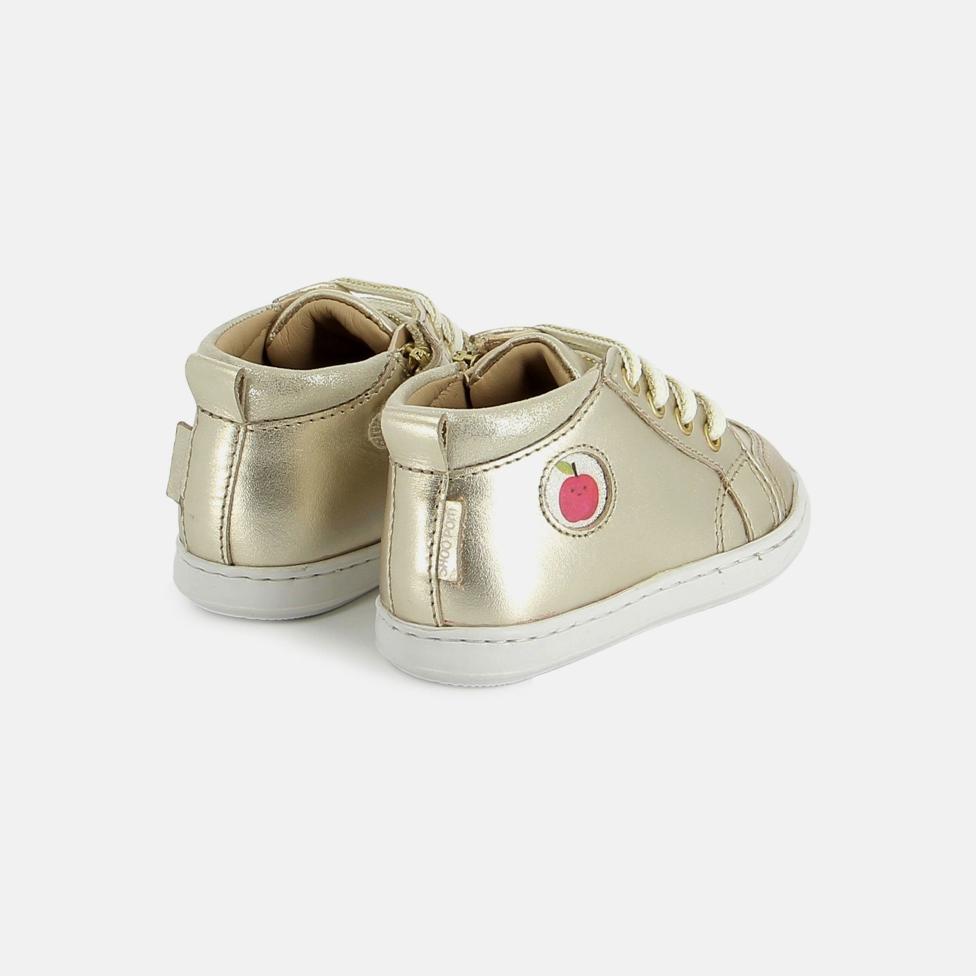 Cette chaussure premiers-pas en cuir a été spécialement conçue pour accompagner bébé dans l’apprentissage de la marche, en alliant confort, maintien et liberté de mouvement. La tige haute à lacets garantit un maintien optimal de la cheville, tandis qu’un zip intérieur discret permet d’ouvrir entièrement la chaussure pour un enfilage rapide et facile. Sa semelle extérieure en caoutchouc résistant offre adhérence et souplesse, parfaite pour les aventures du quotidien. La semelle intérieure en cuir et amovible permet de vérifier la croissance du pied. Sans voûte plantaire, ce modèle favorise un développement naturel, pour respecter la morphologie des pieds en pleine croissance. Pensée et développée avec expertise par notre bureau d’études en Vendée, cette chaussure réunit qualité, confort et savoir-faire Shoo Pom.